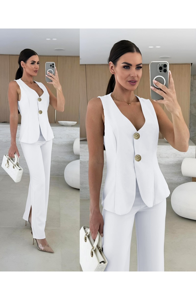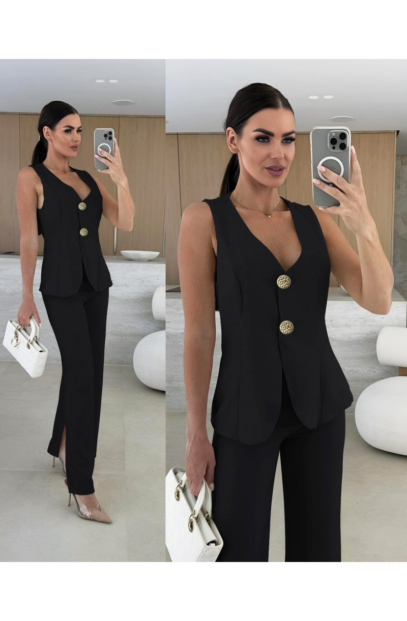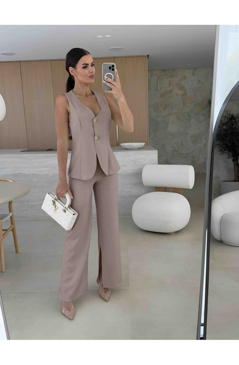 Γυναικείο κουστούμι γιλέκο μεσάτο με χρυσά κουμπιά και φαρδύ παντελόνι