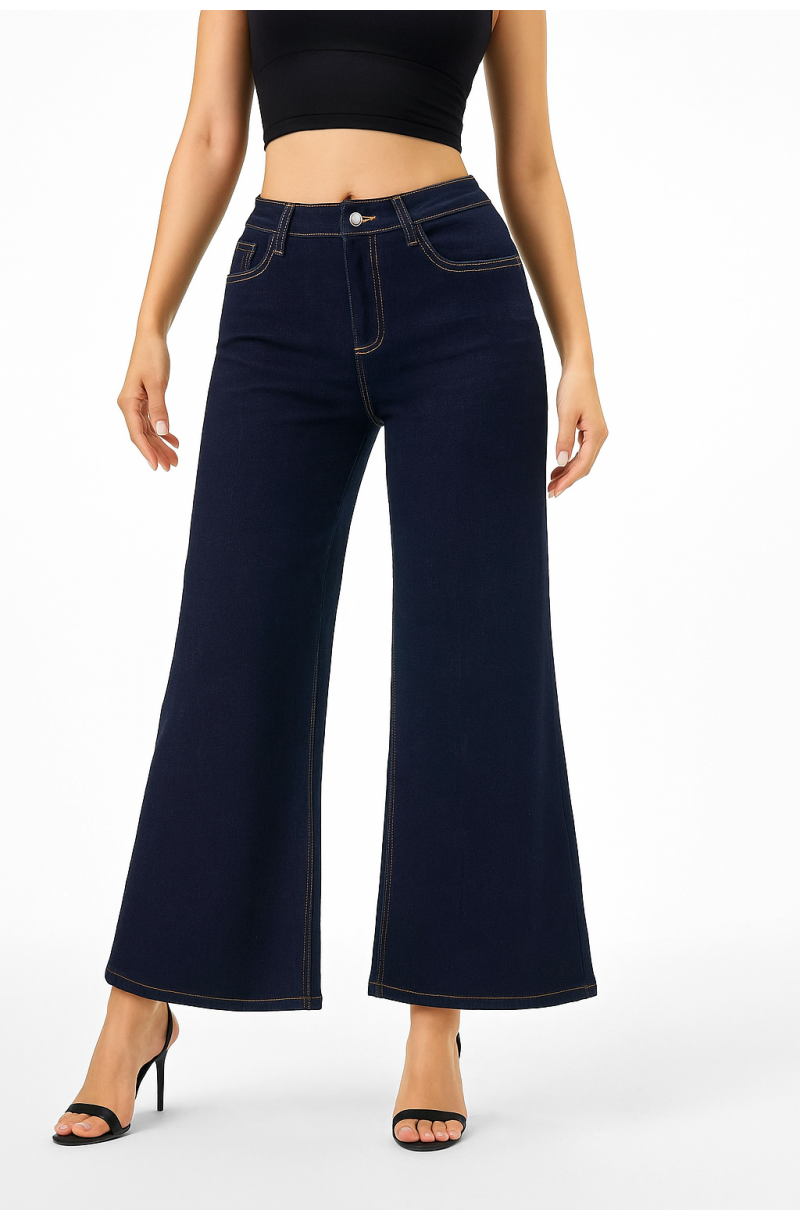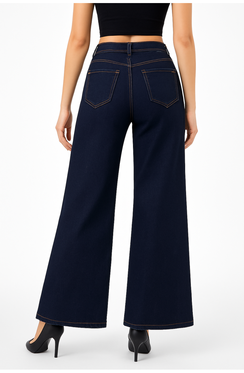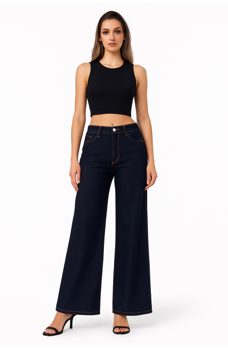 Γυναικείο τζιν παντελόνι φαρδιά γραμμή μπλε σκούρο
