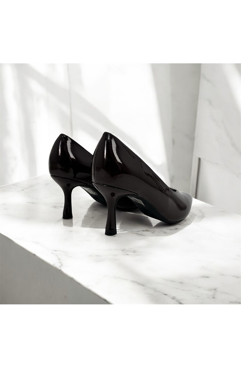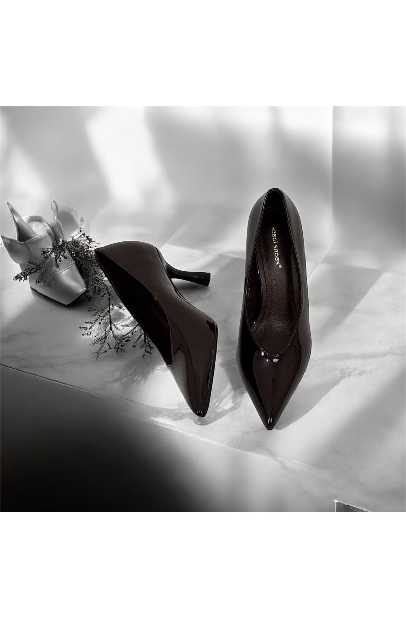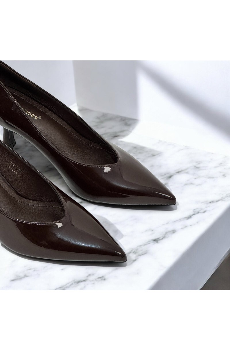Γυναικεία γόβα λουστρίνι μυτερή καφέ, 7 cm τακούνι πολύ σικάτο και άνετο
