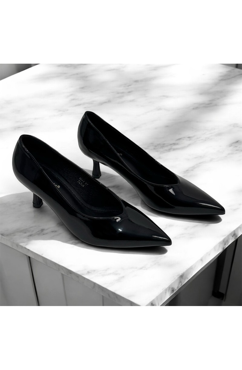 Γυναικεία γόβα λουστρίνι μυτερή μαύρη