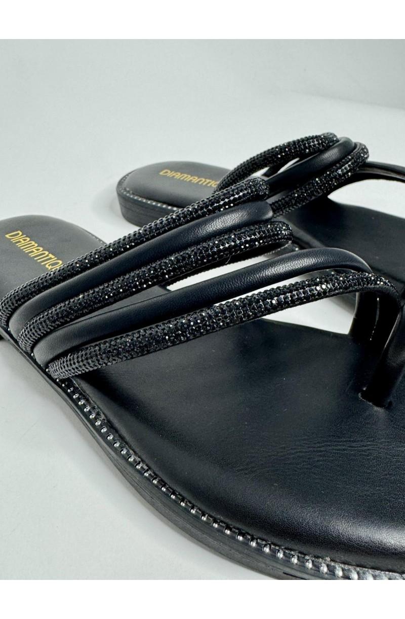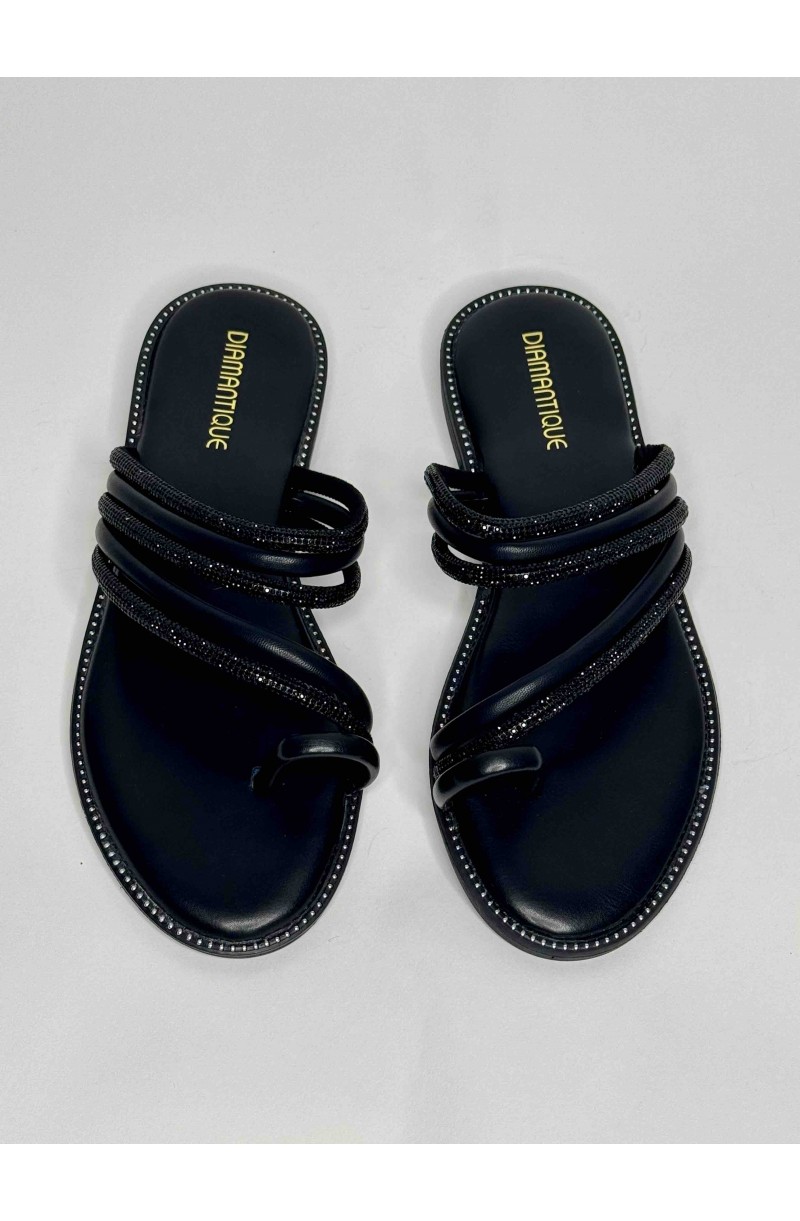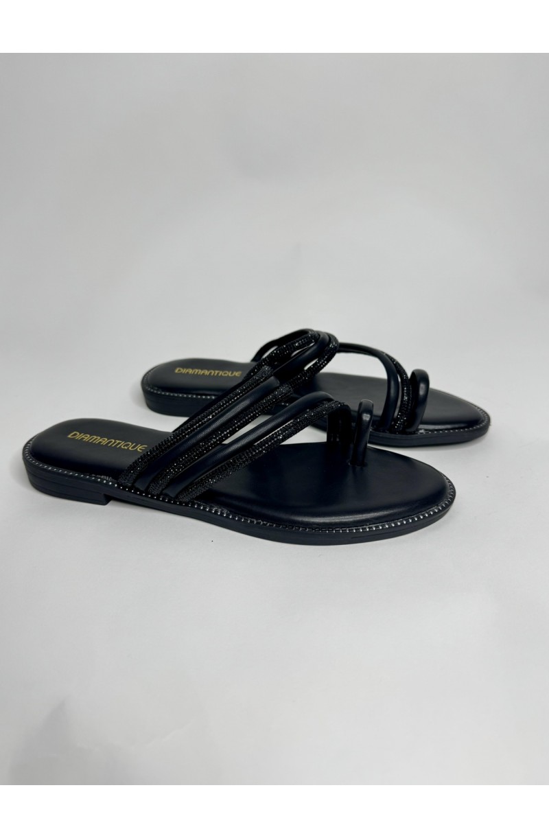 Γυναικεία Φλατ παντόφλα μαύρη με στρας