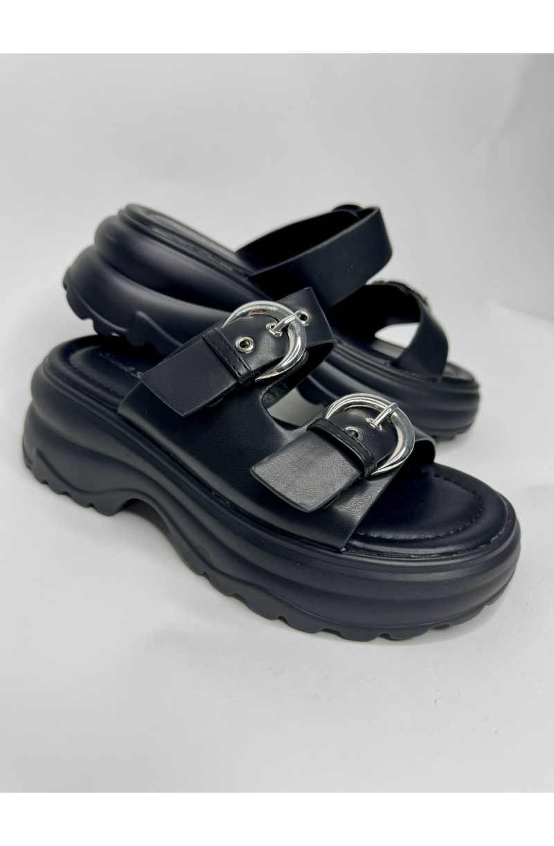Μαύρη παντόφλα με διπλό πάτο από αφρώδες μαλακό υλικό πολύ άνετη και ελαφριά! Ρυθμιζόμενα λουράκια στο πάνω μέρος ιδανική για καθημερινή χρήση