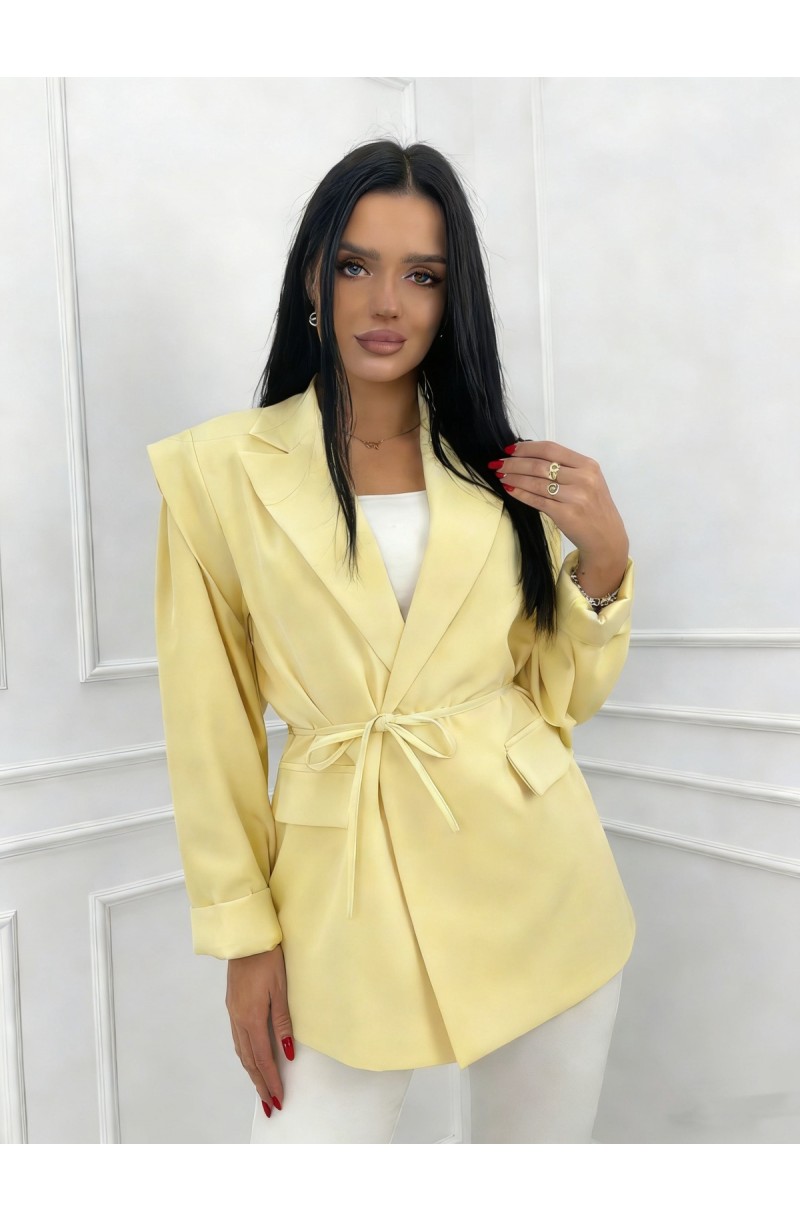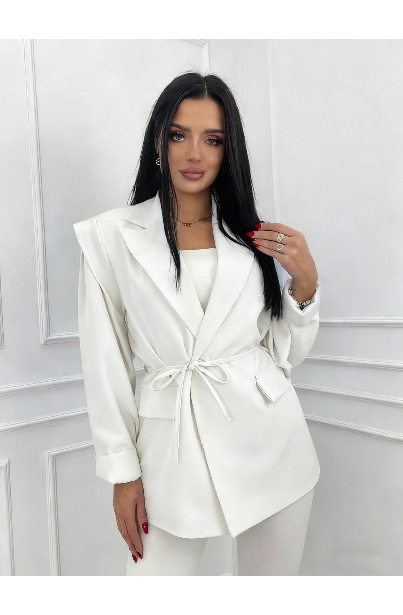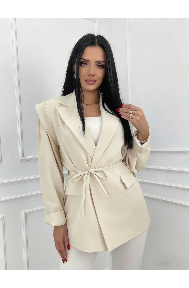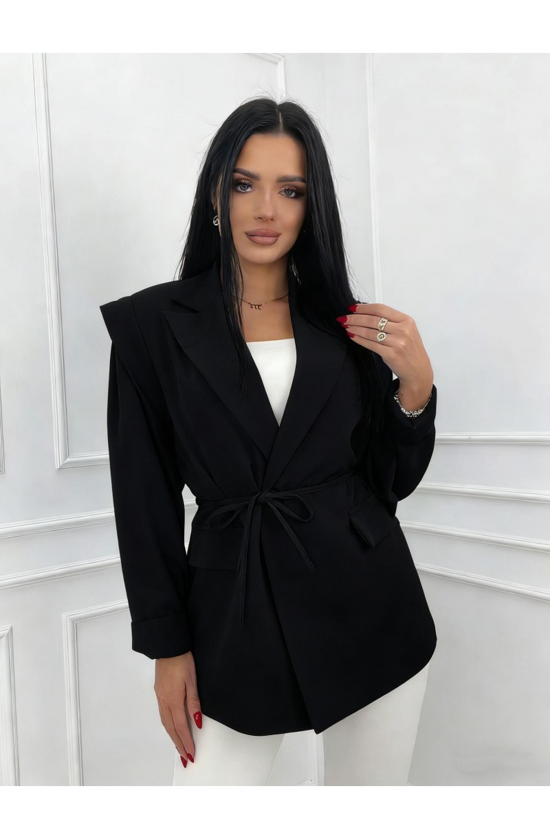 Γυναικείο σακάκι με έντονες βάτες και ζώνη